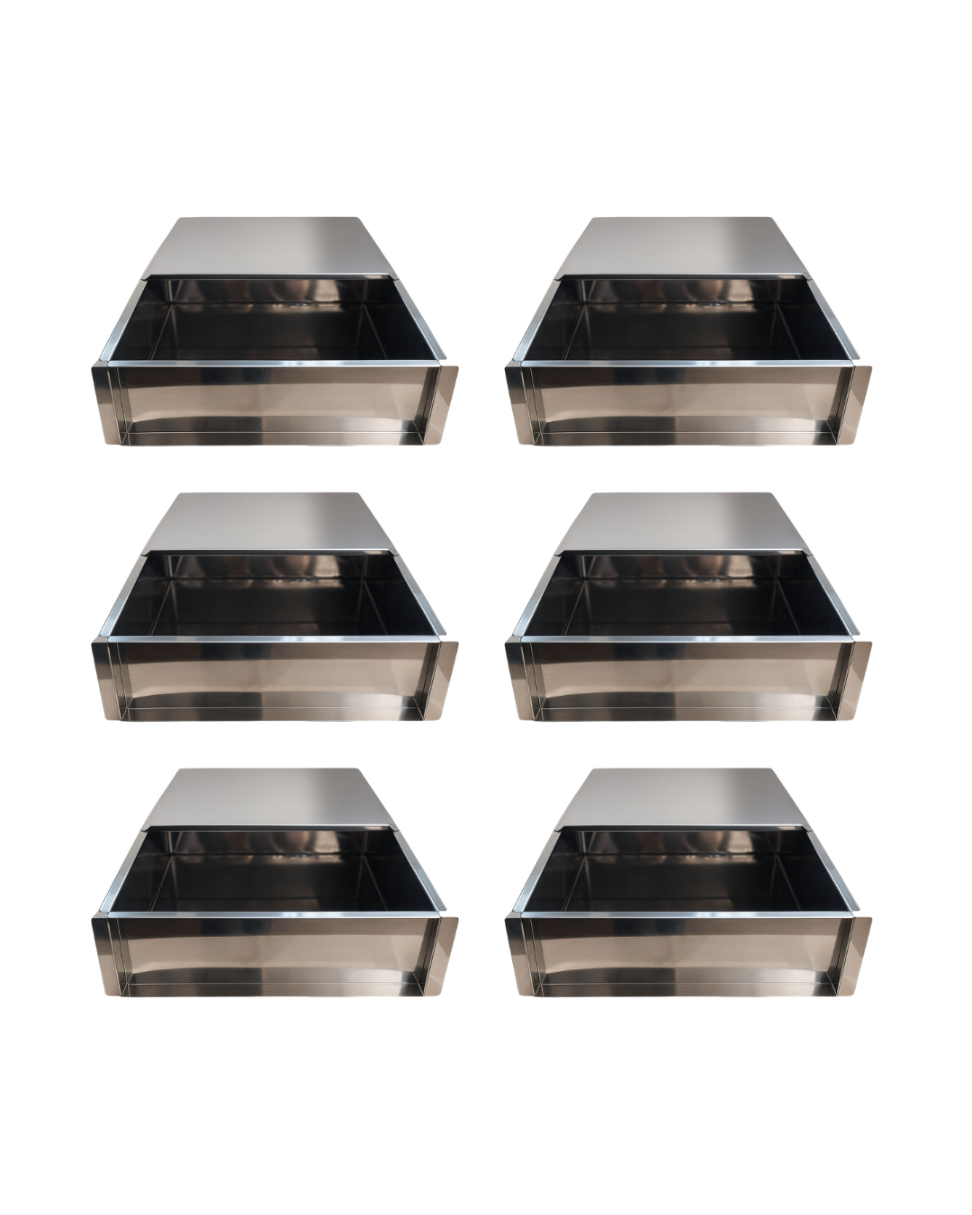 KIT 6 FORMAS LATERAL REMOVÍVEL TIRAMISU SLICE CAKE BOLO DE FATIA GRANDE INOX COM TAMPA 30X30X10 CM