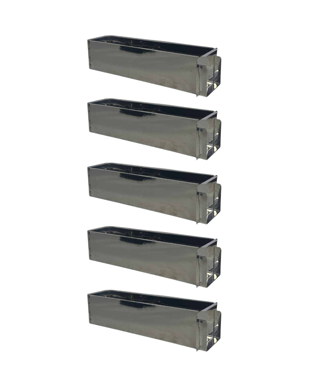 KIT 5 FORMAS LATERAL REMOVÍVEL TIRAMISU SLICE CAKE BOLO DE FATIA INOX 30X10X10 CM