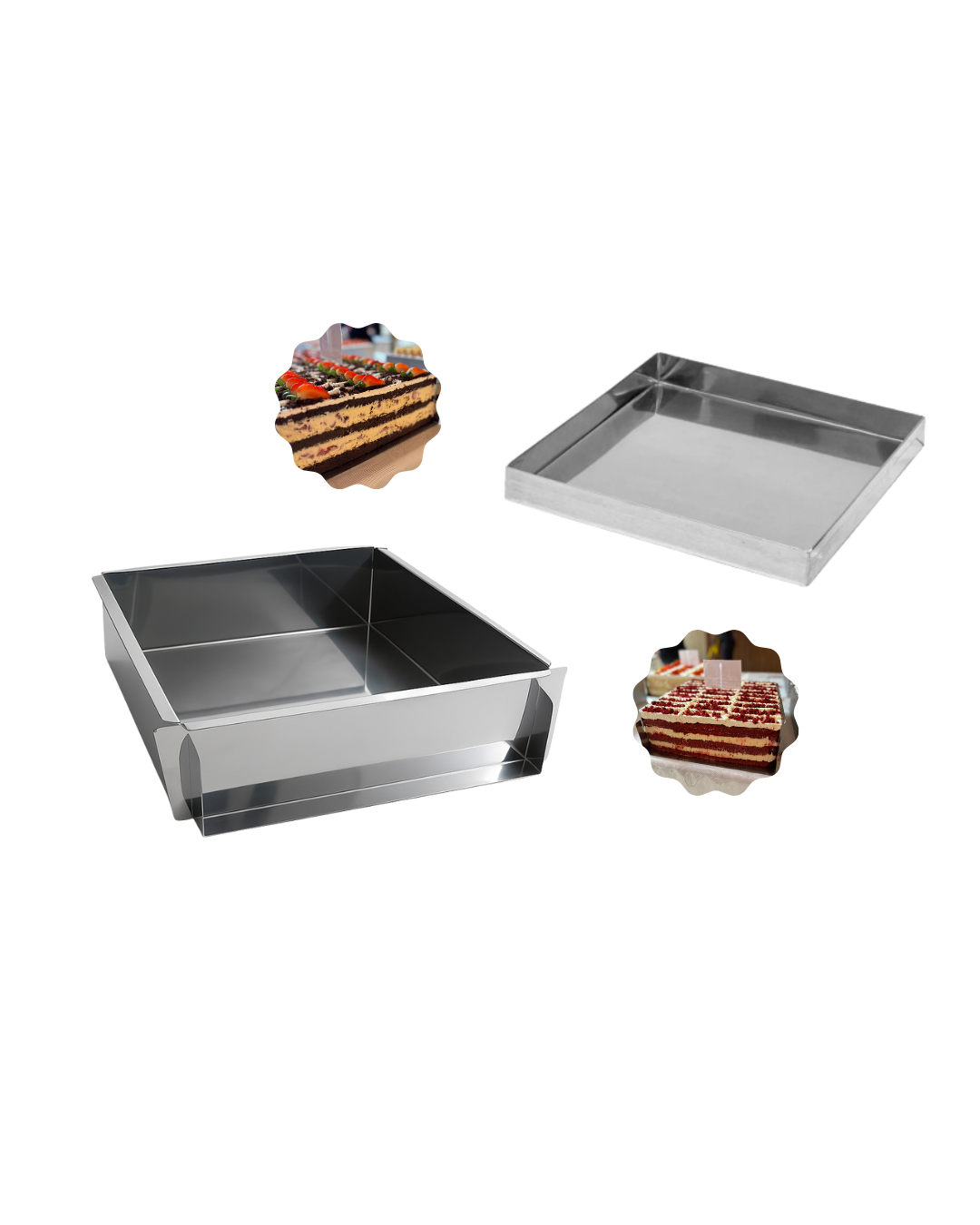 O kit forma slice cake inox 30x20x10 com lateral removível + assadeira inox 30x20x5 é ideal para quem busca praticidade, padronização e qualidade na produção de bolos de fatia, tiramisu e sobremesas.