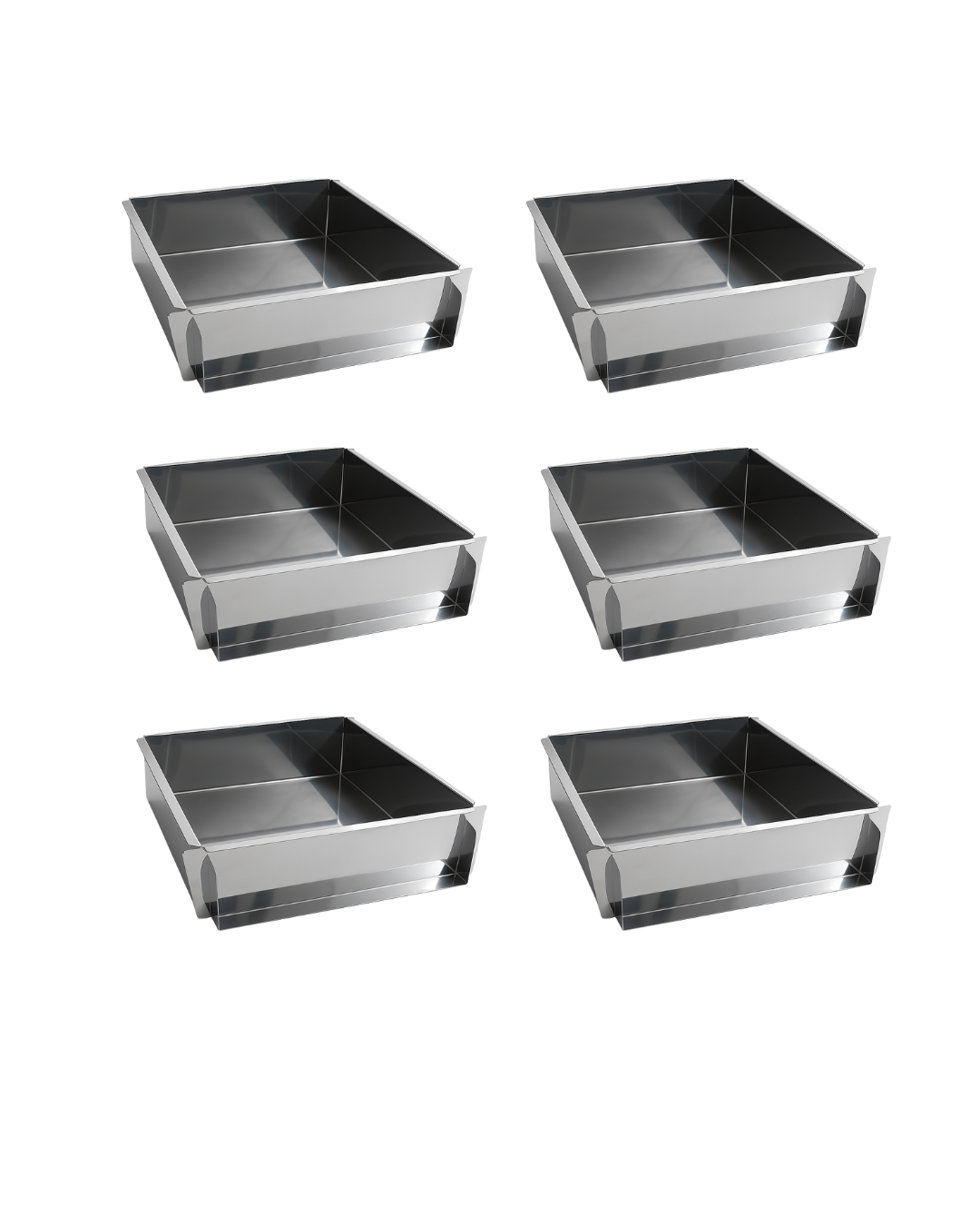 KIT 6 FORMAS LATERAL REMOVÍVEL TIRAMISU SLICE CAKE BOLO DE FATIA GRANDE INOX 30X30X10 CM